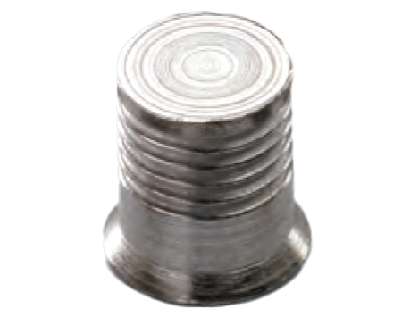 Als gevolg van de drukkracht die door de klinknagelpons en de klem wordt uitgeoefend, drukt de vorm van de ondermatrijs het materiaal in de omtreksgroef van de Tuk-Rivet®.